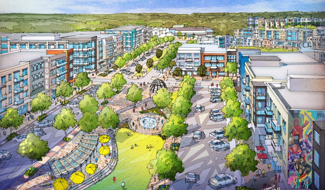 Major outcomes of the workshop included a refined, overall design for the Bowen site with a mix of housing options, retail, and community-serving institutions. Expanded usable green spaces and parks that also serve storm water management; multiple concept designs for Donald Lee Hollowell and James Jackson Parkways to make them safer streets; and ideas for trails and environmental remediation throughout the Choice Neighborhood.